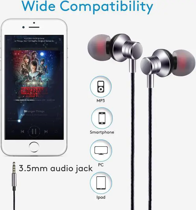 [In-line microphone]: With in-line microphone can conveninet to make calls end calls play/pause/answer and skipping tracks forward and back. The In-ear headphone with microphone support a wide range of devices like cell phones computers laptops MP3 MP4 players which with 3.5 mm audio jack devices for gym listening to music and games.