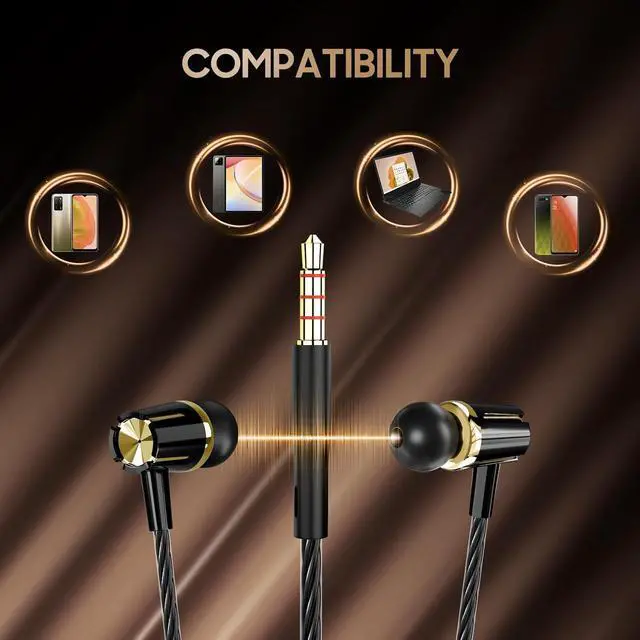 The one-touch multi-function button at the microphone allows you to play pause answer/end calls and skip/previous song without picking up the phone making operation very convenient[Anti-Winding Wire Design] - Wired earphones with ultra-tough thread lightweight design environmental health feel comfortable with anti-winding function easy to store not easy to break to maintain the service life[Wide Compatibility] - Wired headphones for 3.5 mm headphone jack devices with gold-plated connectors you can get a consistent sound transmission from your device ideal for iPhone devices android smartphones with iPods with iPads mp3 players music speakers computer headphones laptops and most other 3.5 mm headphone jack devices
