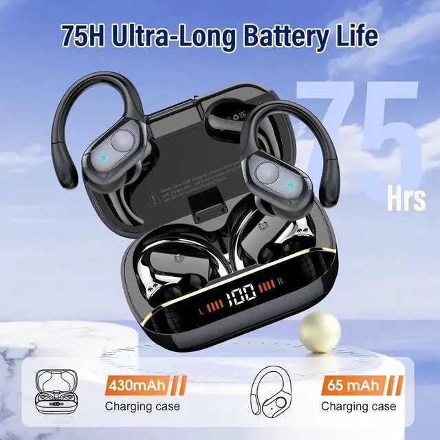 Technology Innovation: Equipped with a new Bluetooth 5.4 chip the Bluetooth earphones offer enhanced anti-interference capabilities and optimized channel hopping mechanisms effectively shielding against external interference. Compatible with HFP A2DP HSP and AVRCP protocols they ensure quick pairing and stable transmission for an uninterrupted audio experience. Whether at home in the office or at the gym you can easily control your music and calls. 75 Hours Playtime & Dual LED Display: These running headphones offer up to 15 hours of use on a single charge. With the fast-charging Type-C port they fully charge in just 1.5 hours. When paired with the charging case the total playtime extends to 75 hours. The dual LED display shows the charging case's battery and earbud charging progress keeping you informed at all times. Crystal-Clear Calls and