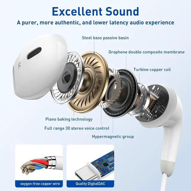 Superior Sound & Enhanced Durability The usb c earphones Metal-plated connectors greatly reduce the phenomenon of poor contact Stretch resistant long-lasting; 1.2 meters length built-in powerful DAC chip to maintain the high-resolution acoustics of your devices no buzzing popping or any bad audio issues just plug and play to enjoy your favorite music. Ergonomic In-Ear Headphone DesignThis in ear wired earphone adopts a lightweight cavity design which is comfortable and stable to wear and is not prone to swelling and pain even after long-term use. The high-definition parsing unit brings transparent vocals and full bass with a natural balance of three frequencies suitable for listening to music watching dramas and playing games.
