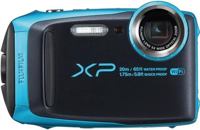Capture Your Adventure Whenever Wherever Integrates four rugged protection features: waterproof to 82ft/25m freezeproof to 14°F/-10°C shockproof to withstand drops from 5.9 ft/ 1.8 m and dustproof to keep out sand and other foreign particles. The camera is suitable for a variety of outdoor scenes. High-performance Fujinon Zoom Lens The widest setting of 28mm on the high-performance versatile Fujinon 5x optical zoom lens is perfectly suited to close up action shots and beautiful natural scenes. Clear portraits are easy using the 5x optical zoom and you can get even closer using the 10x Intelligent Digital Zoom. High-resolution 16.4 Megapixel Sensor & Continuous Shooting Mode Thanks to the 16.4 megapixel BSI-CMOS sensor even dark scenes can be captured in bright clarity. The camera features 15 frames per second high-speed continuous shooting. ADVANCED SR AUTO MODE The XP140 detects your subject and shooting scene and automatically optimizes the camera's settings. The Eye Detection feature helps improves your portrait pictures by automatically focusing on your subject's eyes. Connect to a Smart Device to Share your Adventure Quickly and Easily Activate the continuous low energy Bluetooth® connection using your smartphone or tablet to wirelessly share images from the camera to your device. Wireless transfer is also available for the FUJIFILM Instax SHARE printer allowing you to print instantly wherever you are.