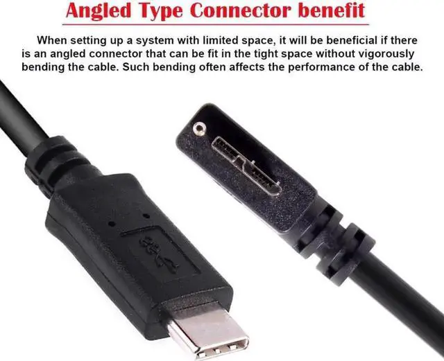 5Gbps USB-C Type-C Host to Micro USB 3.0 Screw Mount 90 Degree Angled for Industrial Camera Storage, Length: 100cm.