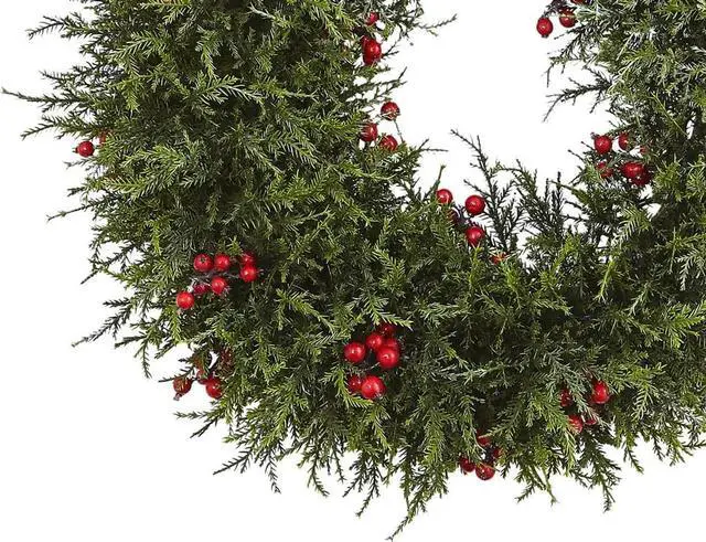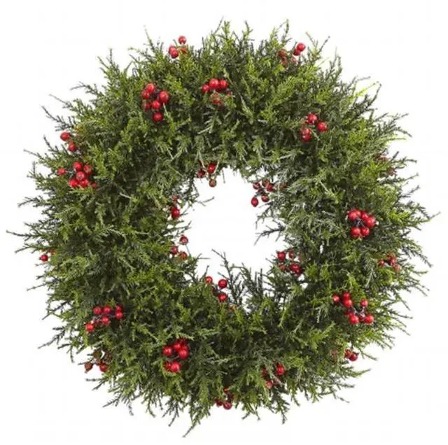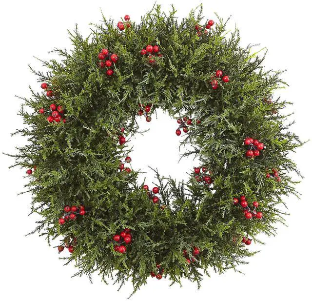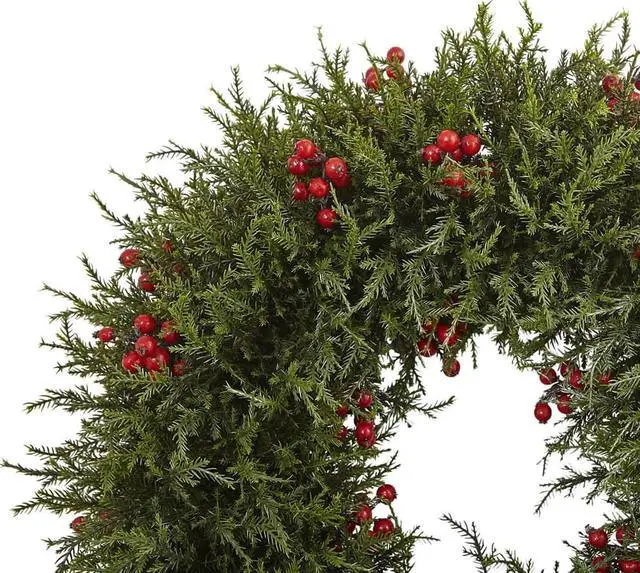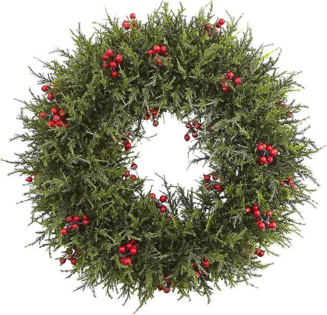 The perfect look for the holidays whether it's in your home or office, this lovely cedar berry wreath will be a favorite year after year. With soft green cedar pointing in every direction, accented by lush-looking berries, it's the ideal size for almost any area.?The best part is it'll always look fresh, meaning it'll be used year after year. It also makes a great gift for those that love holiday d?cor.