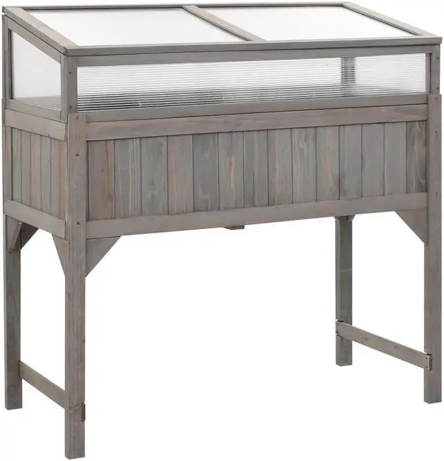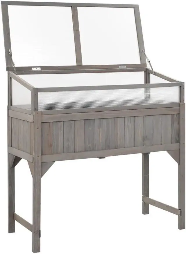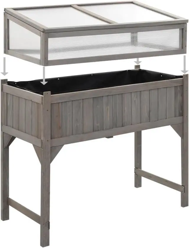 - It features a greenhouse on the top, which offers warmth and protection for plants in cold weather. Display your favorite flower or plants beautifully with this wooden raised planter!