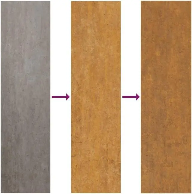 Corten steel, also known as weathering steel. This is anti-corrosive by its very nature. It develops a rusty protective layer against corrosion when first exposed to atmospheric conditions.