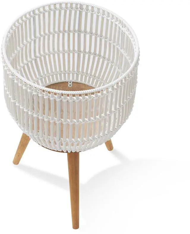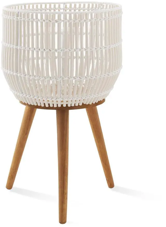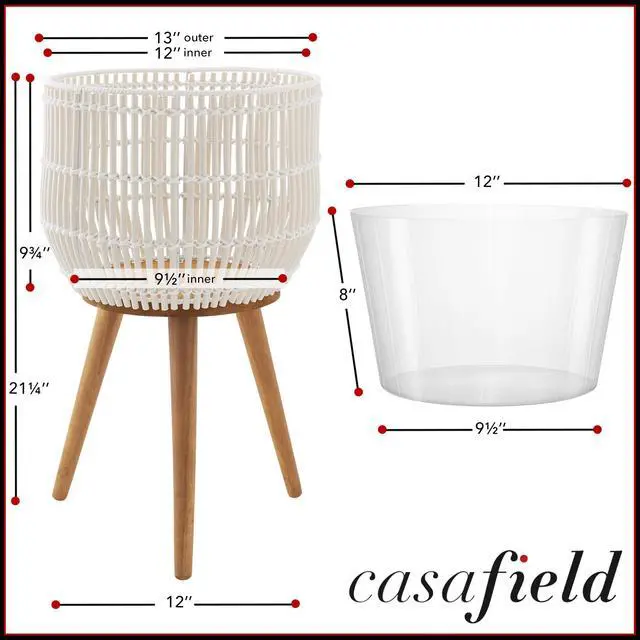 Add natural charm to your home with the Casafield planter basket stand, a stylish and functional accent for displaying your favorite flowers, plants, or trees. Handwoven in rattan, this round planter basket is elevated by three sturdy acacia wood legs. Its timeless design blends effortlessly into modern, bohemian, and mid-century decor styles.