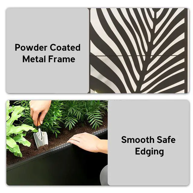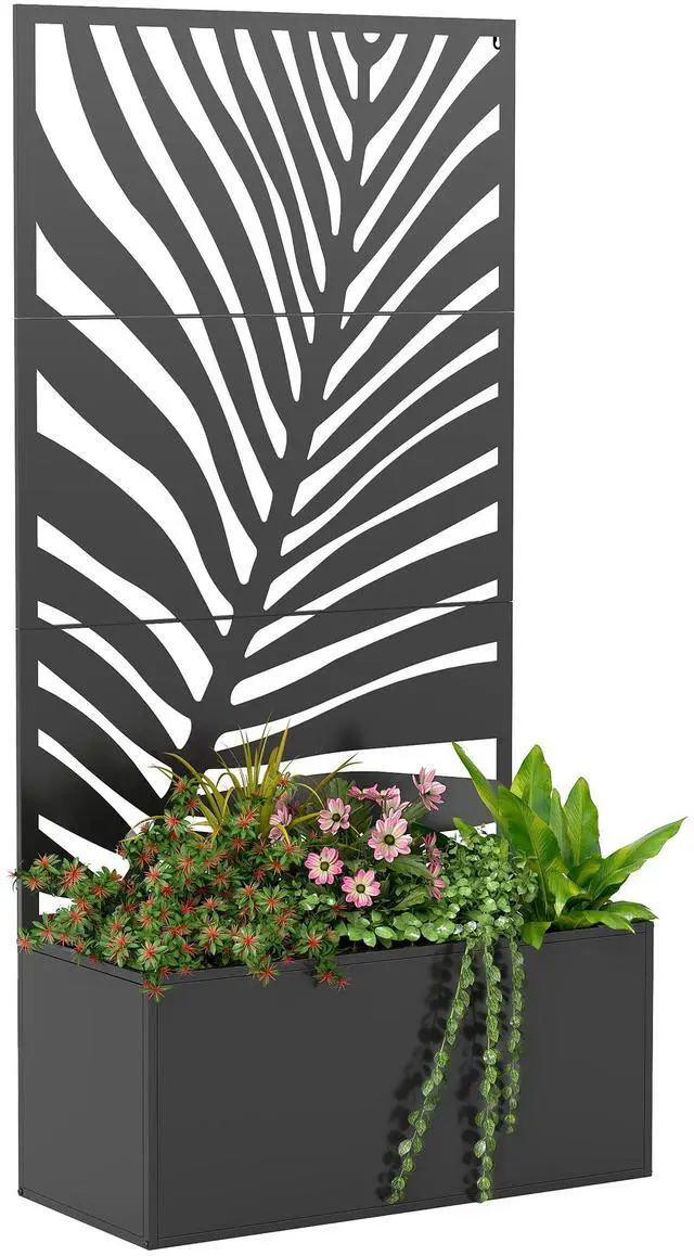 • Metal Planter Box with Trellis, Raised Garden Bed with Privacy Screen for Climbing Plants, Leaf Cut-Out Privacy Planter