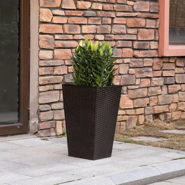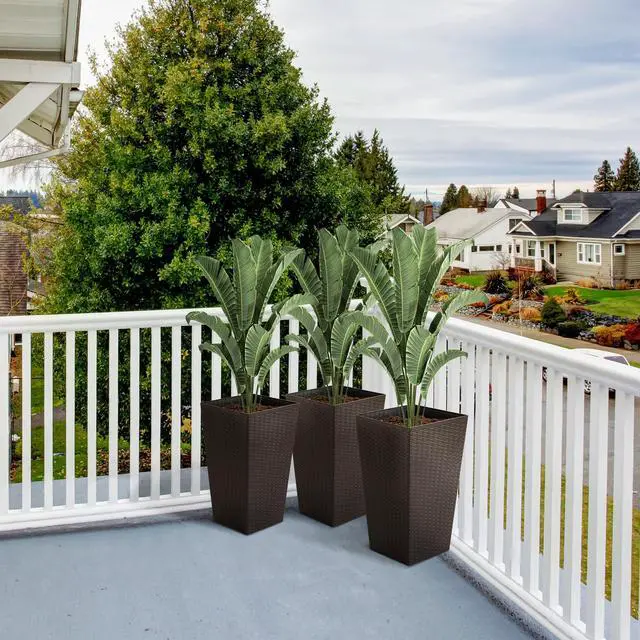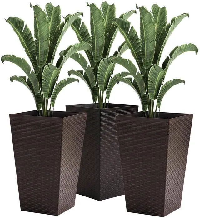 • Set of 3 Tall Planters with Drainage Hole, Outdoor Flower Pots, Indoor Planters for Porch, Front Door, Entryway, Patio and Deck, Brown