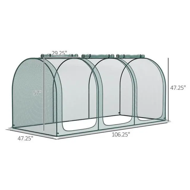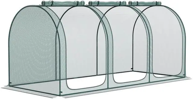 • 9' x 4' Crop Cage, Plant Protection Tent with Three Zippered Doors, Storage Bag and 6 Ground Stakes, for Garden, Yard, Lawn, Green