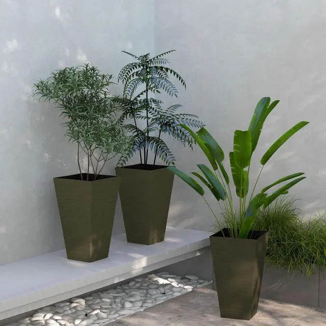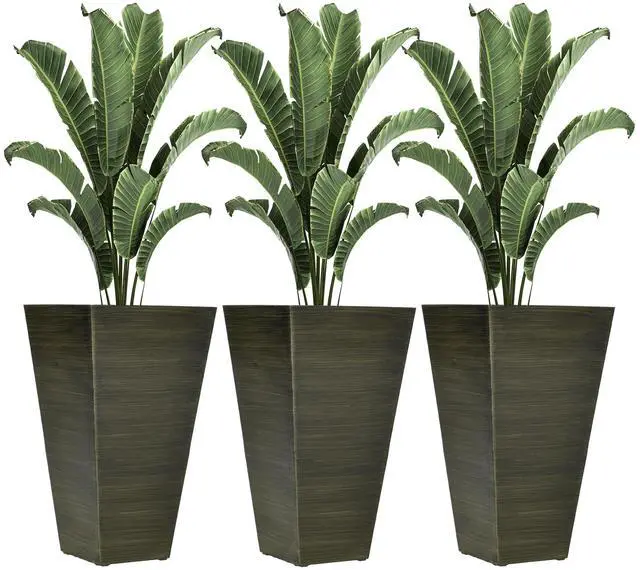 28" Tall Outdoor Planters, Set of 3 Large Taper Planters with Drainage Holes and Plug, Faux Wood Plastic Flower Pots for Outdoor, Indoor, Garden, Patio, Dark Brown