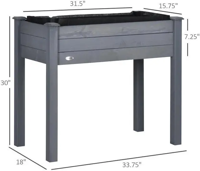 Raised Garden Bed with Legs, 34" x 18" x 30", Elevated Wooden Planter Box, Self-Draining with Bed Liner for Vegetables, Herbs, and Flowers Backyard, Patio, Balcony Use, Dark Gray