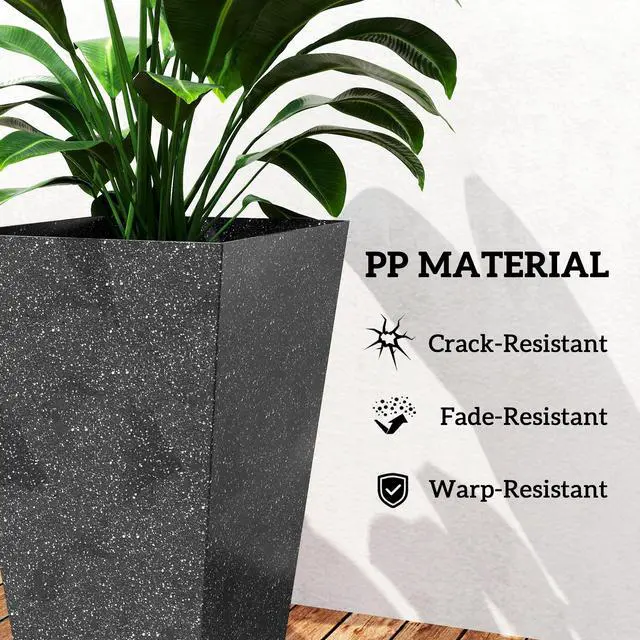 28" Tall Planters, Set of 3 Plastic Flower Pots with Marble Finish and Drainage Holes, Stackable Tapered Outdoor Planters, Black