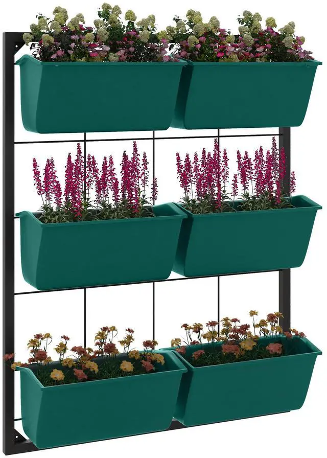 3-Tier Wall Planter with 6 Pots for Indoor and Outdoor Use, Hanging Plant Holder, Self Draining Wall Mounted Planter for Vegetables, Flowers, Herbs, Green