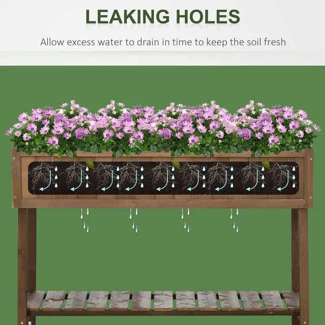 43x18x30in Raised Garden Bed with 8 Pockets and Shelf, Wooden Elevated Planter Box with Legs to Grow Herbs, Vegetables, and Flowers, Dark Brown