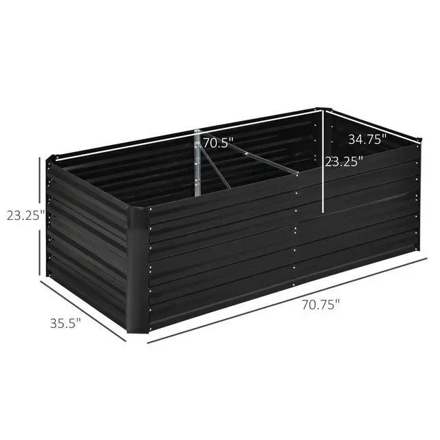 • Galvanized Raised Garden Bed Kit with Reinforcing Bars, Large and Tall Metal Planter Box for Vegetables, Flowers and Herbs, 6' x 3' x 2', Black