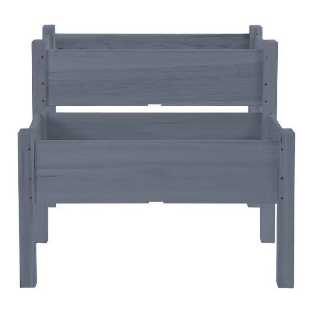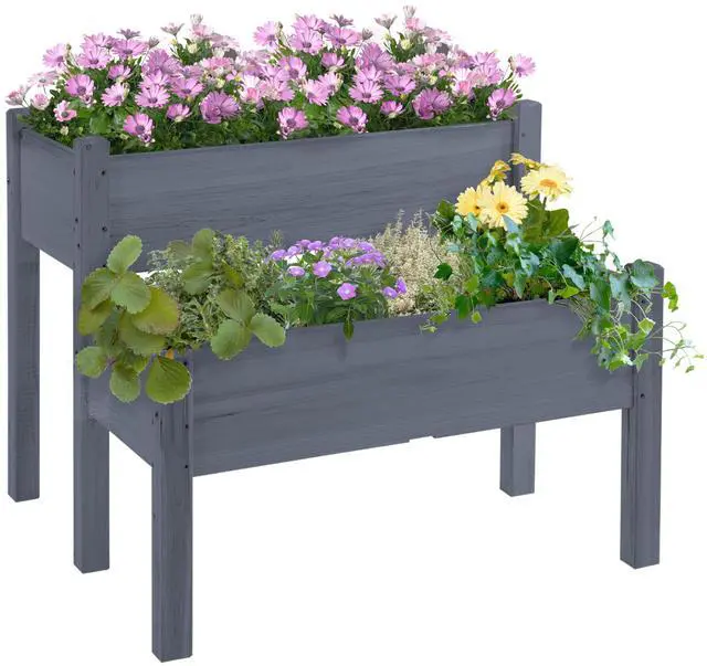 • 34"x34"x28" Raised Garden Bed, 2-Tier Elevated Wood Planter Box for Backyard, Patio to Grow Vegetables, Herbs, and Flowers, Gray
