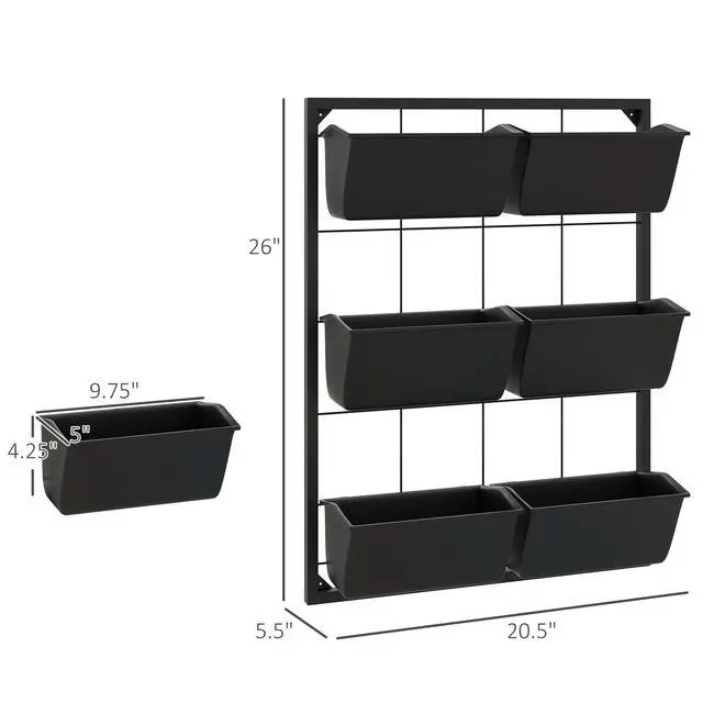 3-Tier Wall Planter with 6 Pots for Indoor and Outdoor Use, Hanging Plant Holder, Self Draining Wall Mounted Planter for Vegetables, Flowers, Herbs, Black