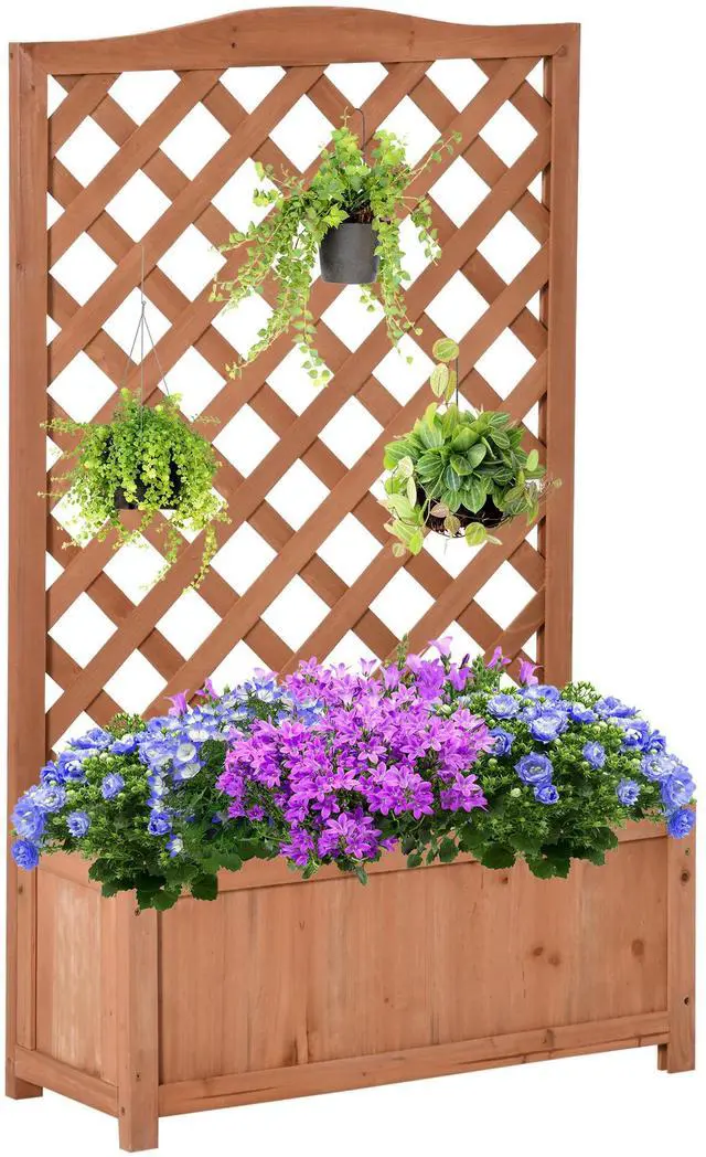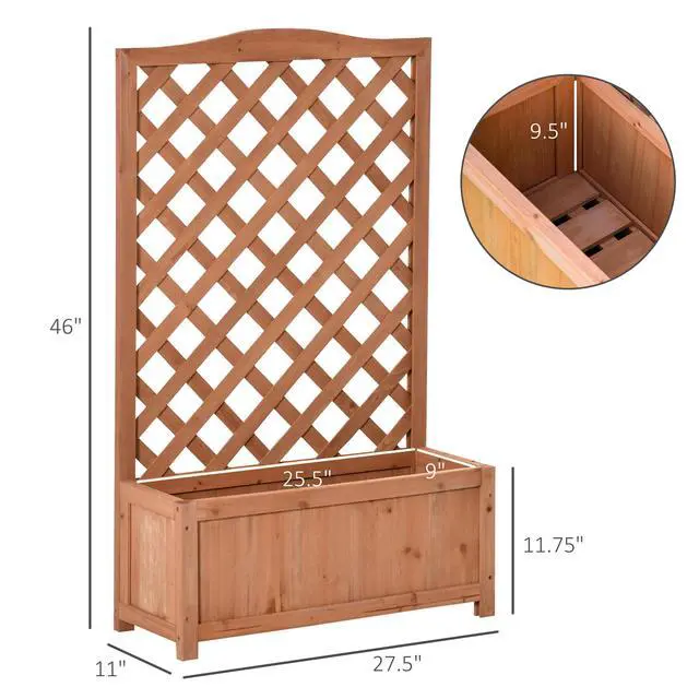 Wooden Raised Garden Bed with Trellis, 46" Planter Box, to Grow Vegetables, Herbs, and Flowers for Backyard, Patio, Brown