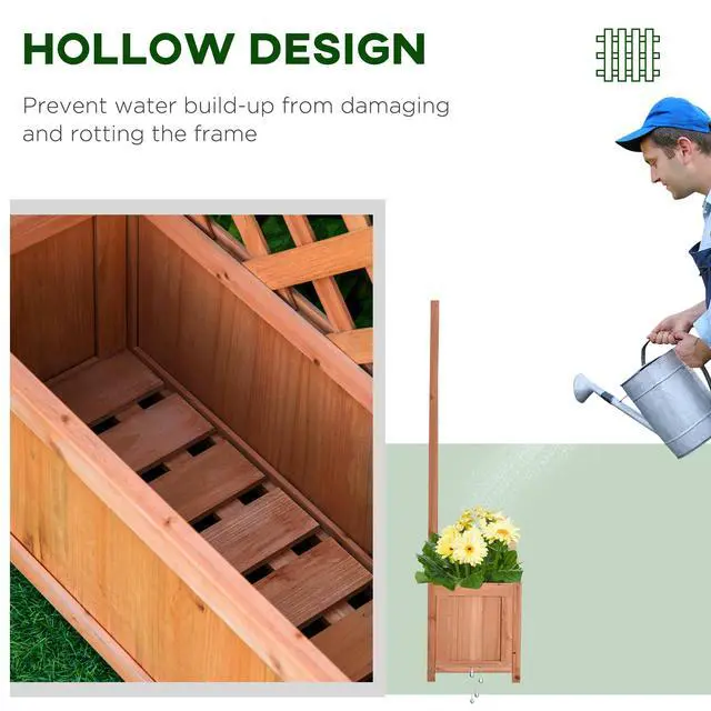 • Wooden Raised Garden Bed with Trellis, 46" Planter Box, to Grow Vegetables, Herbs, and Flowers for Backyard, Patio, Brown