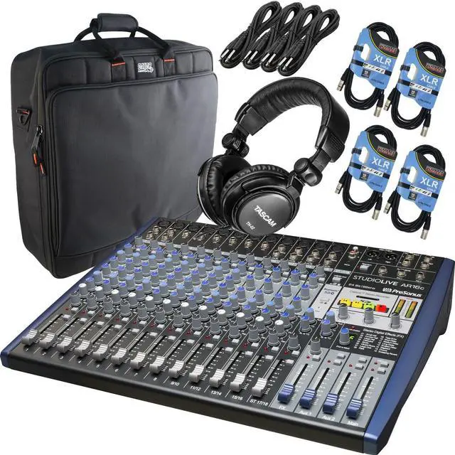 Building upon the success of the original AR16-USB, the PreSonus StudioLive AR16c is an 18-channel hybrid performance and recording mixer well suited for a variety of applications including mixing and recording live shows, studio productions, band rehearsals, podcasts, and more. Updates to to the AR16c include a USB-C connection, Bluetooth 5.0, and a refresh of the mixers layout and design. The mixer is packed with analog connections and digital tools that are powerful, yet easy to learn and use. The mixer features Class-A preamps and 3-band EQ.