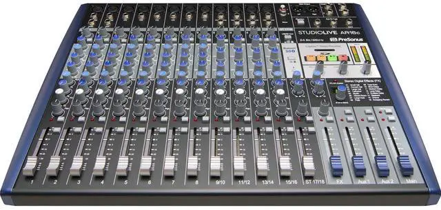 Building upon the success of the original AR16-USB, the PreSonus StudioLive AR16c is an 18-channel hybrid performance and recording mixer well suited for a variety of applications including mixing and recording live shows, studio productions, band rehearsals, podcasts, and more. Updates to to the AR16c include a USB-C connection, Bluetooth 5.0, and a refresh of the mixers layout and design. The mixer is packed with analog connections and digital tools that are powerful, yet easy to learn and use. The mixer features Class-A preamps and 3-band EQ.