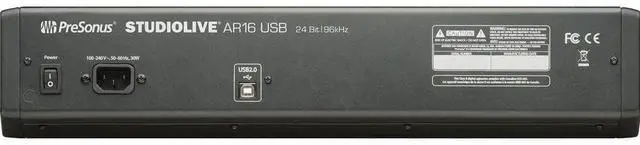 The StudioLive AR16 USB from PreSonus is an 18-channel hybrid performance and recording mixer well suited for a variety of applications including mixing and recording live shows, studio productions, band rehearsals, podcasts, and more. The mixer is packed with analog connections and digital tools that are powerful, yet easy to learn and use. The mixer features Class-A preamps and 3-band EQ.