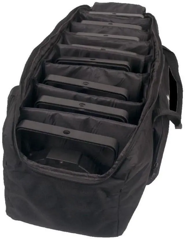 Check out the Eliminator Lighting MEGA FLAT PAK8 EP Kit which combines eight Mega Par Profile EP LED fixtures with seven 6.6 DMX cables and a soft carrying bag, to provide the primary components of a mobile lighting rig with protection from the rigors of on-the-road wear and tear. The Mega Par fixture is a compact, low-profile par designed for uplighting and stage lighting. This 2-in-1 fixture offers RGB color mixing plus UV black light, making it a multiuse wash fixture. And with 32 built-in light shows and 64 color macros, the Mega Par Profile EP is an ideal solution for multiple venues.
