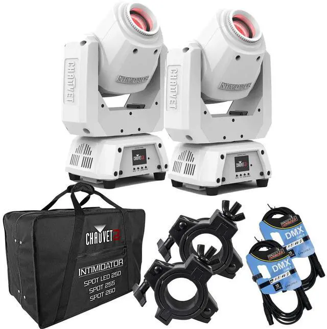 Lighting designers looking for a professional moving head will be impressed with the black CHAUVET DJ Intimidator Spot 260X, a moving head LED light fixture with a bright output, designed to energize dancefloors in clubs, bars, event spaces, and more. Featuring adjustable strobe speed, movement macros, fast and precise head movements, a color wheel, and a motorized focus that lets you project crisp gobos from nearly any distance, this versatile fixture allows for flexible effect design and precise show control. The color wheel has eight colors plus white and split colors, while the gobo wheel has seven different patterns plus an open position.