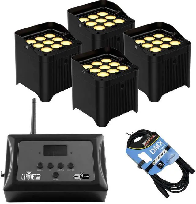 (4) Chauvet DJ Freedom Par Q9, Chauvet DJ D-Fi Hub, DMX Cable Bundle