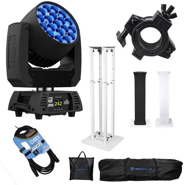 Chauvet Pro Rogue R2X Wash Moving Head, Rockville Totem, Clamp, DMX Cable Bundle