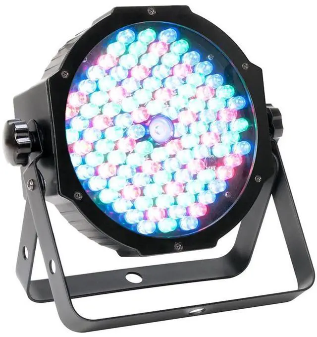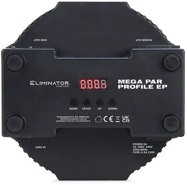 The light is designed to sit directly on the ground or inside a truss without the hanging bracket because the power and DMX inputs and outputs are located on the side of the fixture, not on the rear. The Mega Par Profile Plus has a 30-degree beam angle, 5 operational modes (including DMX Controlled, Sound Active, and Auto-Run), and 5 DMX Channel modes for a variety of programming options. Users can also use the ADJ LED RC2 wireless remote, which is sold separately, to control the Mega Par Profile EP.