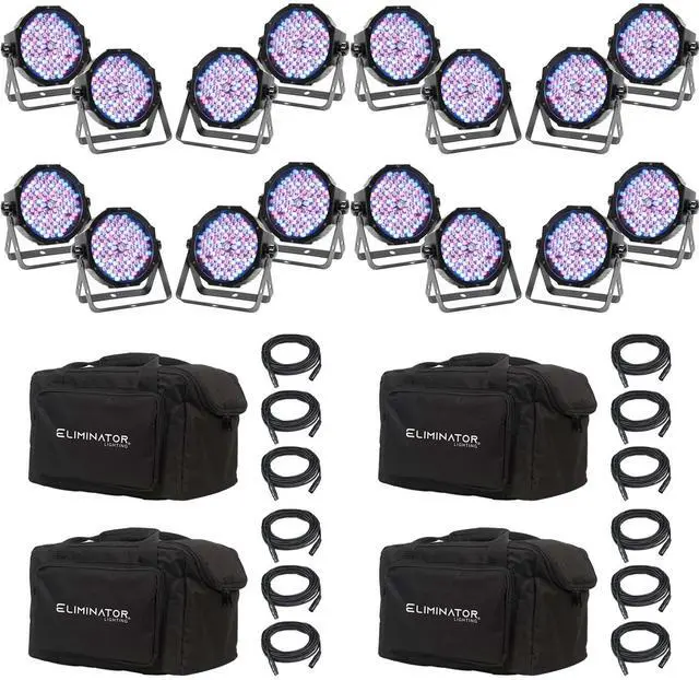 The American DJ Mega Flat Pak EP, a complete wash light setup that combines four Mega Par Profile Plus LED fixtures with three 6 DMX cables and a soft carrying bag to provide the primary components of a mobile lighting rig with protection from the rigors of on-the-road wear and tear. The Mega Par fixture is a compact, low-profile par designed for uplighting and stage lighting. This 2-in-1 fixture offers RGB color mixing plus UV black light, making it a multiuse wash fixture. And with 32 built-in light shows and 64 color macros, the Mega Par Profile Plus is an ideal solution for multiple venues.