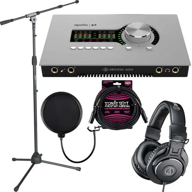 The Universal Audio Apollo x4 Gen 2 with Essentials+ Bundle is a 12×18 desktop Thunderbolt 3 audio interface that offers four Unison mic/line preamps with Auto-Gain, flagship, Gen 2 Elite-Class 24-bit / 192 kHz AD/DA conversion, and QUAD Core DSP for real-time UAD plug-in processing over Thunderbolt at near-zero latencyon Mac and Windows computers. The Essentials+ Bundle lets you mix and record live performances with 36 UAD plug-ins including Pultec EQ, Auto-Tune, classic LA-2A and 1176 compressors, and more. You can use Plug-In Scenes to recall settings instantly, even in the middle of a performance.