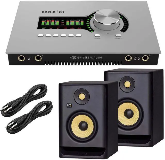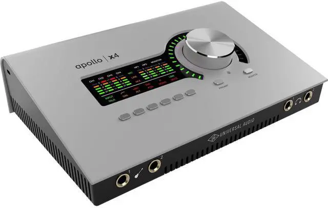 Easily connect the Apollo x4 Gen 2 to professional studio gear with 4 analog line-level I/O, two monitor outs, and two 1/4 Hi-Z instrument inputs. An optical ADAT or S/PDIF I/O is also available for connection to professional, digital outboard hardware. You can mix with confidence in any room using Apollo Monitor Correction powered by Sonarworks. Hear all the low-end detail in your mixes using Bass Management to add a subwoofer to your monitor setup. Quickly set up low-latency cues, plug-in scenes with the UAD Console app.