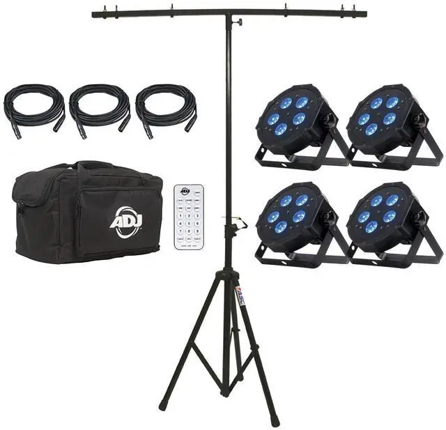 Eliminator Mega Flat Hex Pak Includes 4x Mega Hex Pars, Remote Control, Cables & Carry Bag and T-Bar Stand