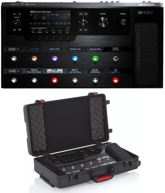 The Helix multi-effects guitar pedal is a new kind of multi-effects floorboard processor that provides massive power and flexibility for creating authentic tones. Packed with Line 6s advanced HX modeling engine, Helix lets you hear brand-new models of vintage and modern amps, cabs, mics and effectsall designed to sound and feel just like the originals. This premium multi-effects unit appeals to players seeking a streamlined yet comprehensive guitar interface for studio, stage or a hybrid rig.