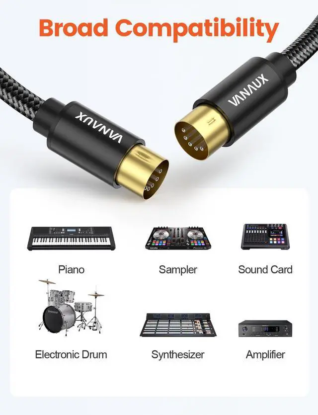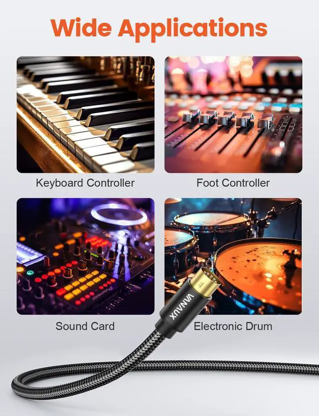 MIDI Cable Compatible with MIDI Keyboard, Keyboard Synth, Rack Synth, Sampler