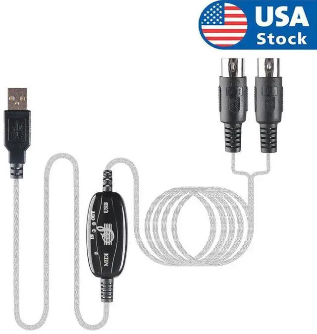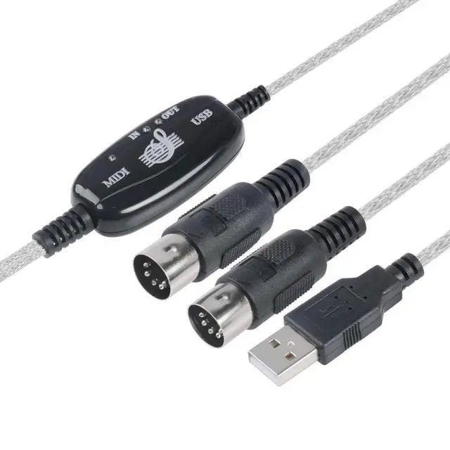 Easy to install adapter features MIDI in and out cables along with USB PC interface plug | Please Note: Some setups will require both MIDI plugs to be plugged in for use