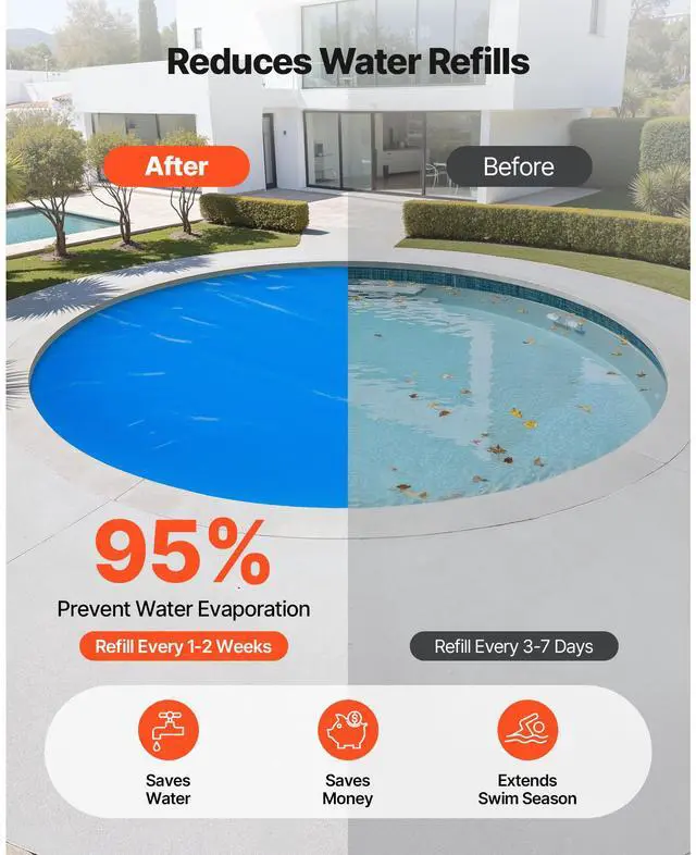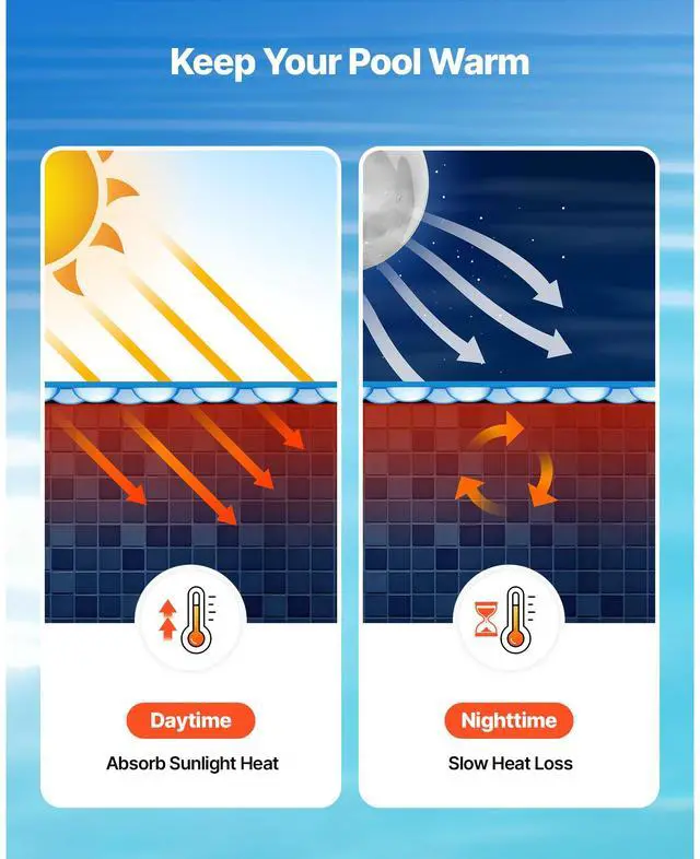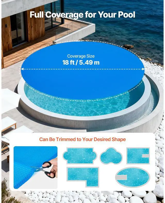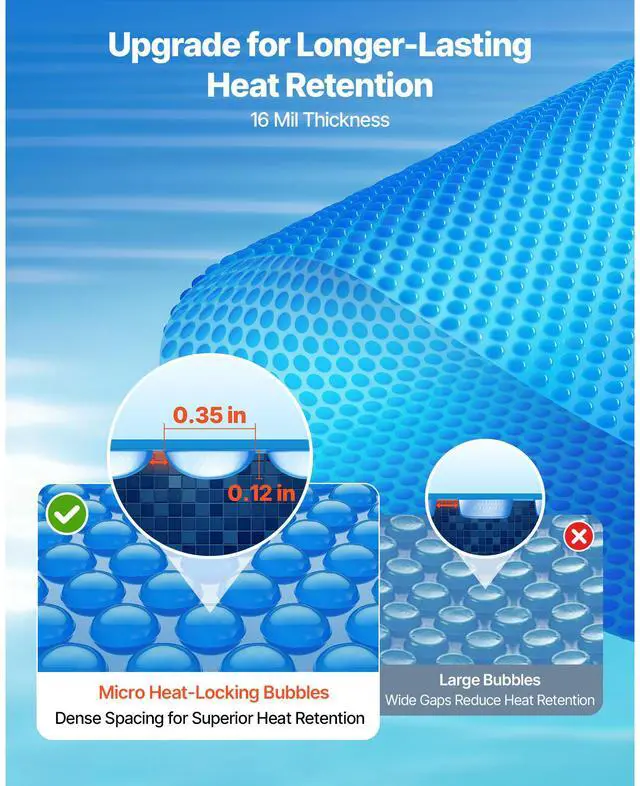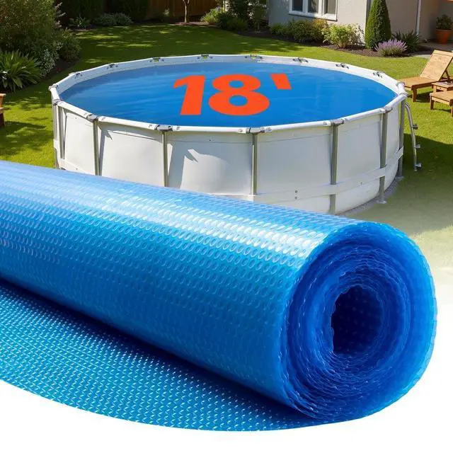 Solar Pool Cover, 18 ft Round Pool Bubble Cover, 16 Mil Pools Solar Blanket with Bubble & PE Material, Daytime Heat Absorption, Nighttime Heat Retention, Heat Retaining Solars Covers, Blue