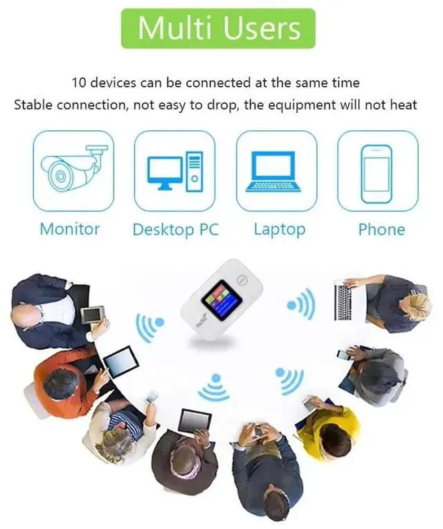 3. Multi-User Support: Designed primarily for car users, business travelers, and outdoor adventurers, the wireless internet router supports connectivity for 8-10 users simultaneously, keeping everyone online without the hassle.