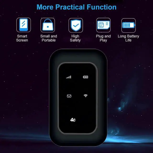 HIGH PERFORAMANCE: The Wi Fi router supports the LTE standard, its download speed is up to 150 Mbps, the upload speed is up to 50 Mbps. It is equipped with a LED smart screen display, 1 x Micro SIM card slot, 1 x lithium battery 2100mAh (please charger more than 24 hours when first time charger), with up to 72 hours of standby time.