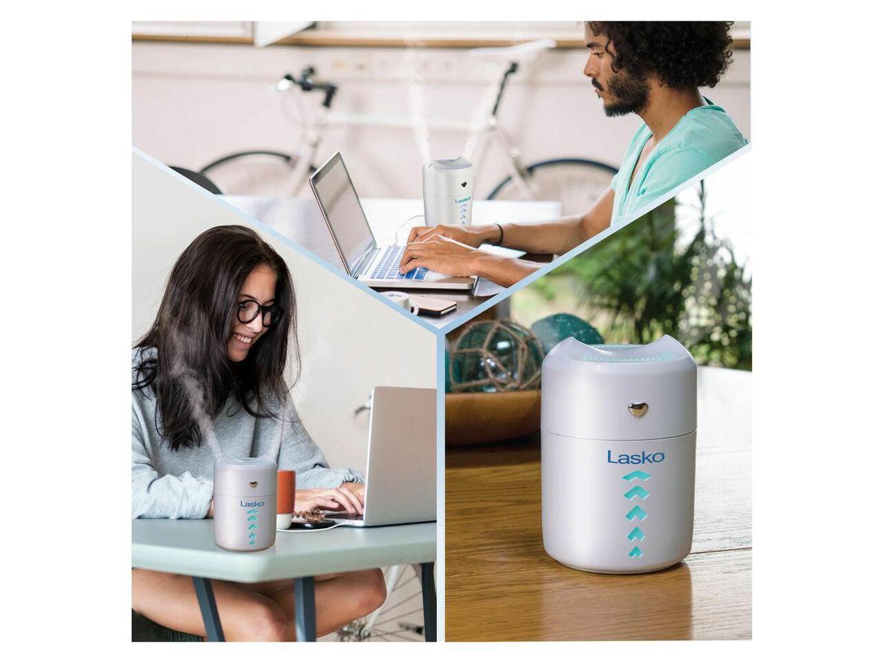 Lasko Ultrasonic Personal Cool Mist Humidifier with Nightlight, UH150, White - Dual Mist, Cool Mist, Ultrasonic - 13.53 fl oz Tank - 190 Sq. ft. - White
