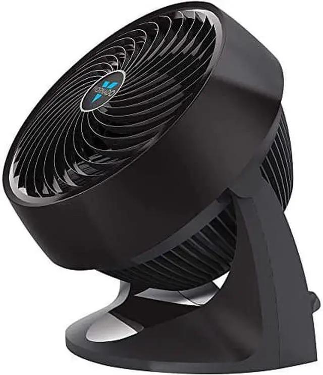The 753 Vornado Air Circulator features specially swept grill spirals that contribute to ultra high volume airflow with less noise. This full size circulator uses signature energy efficient Vortex Action to move air up to 100 feet while providing complete circulation of all the air in the room even in large spaces and rooms with vaulted ceilings. The Vornado 753 tilts to allow you to direct airflow wherever it is needed. 5 Year Limited Warranty, three-speed control, and features a built-in handle. Striking matte and gloss finishes provide a sophisticated look.