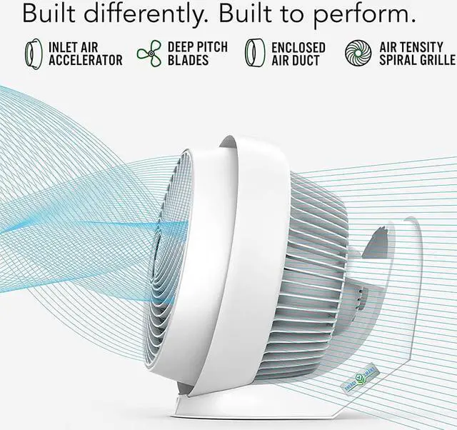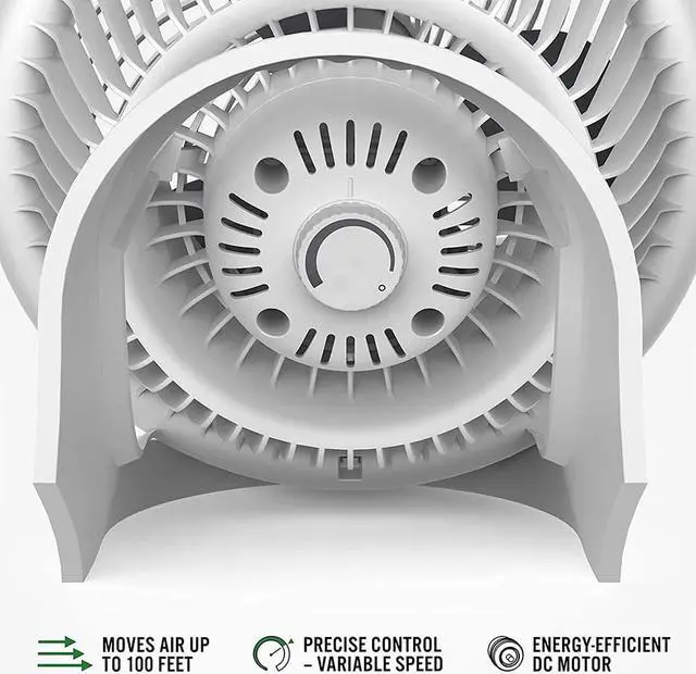VARIABLE SPEED CONTROL True variable speed settings allow for precise airflow control, conveniently located on the back of the circulator. MULTI-DIRECTIONAL AIRFLOW Equipped with an adjustable tilt head and 3 dfiferent base positions that allow you to direct the air where you need it. OPTIMUM PERFORMANCE Deep-pitched blades paired with an inlet guide cone, enclosed air duct, and spiral grill help move air up to 100 ft. Made in the USA of U. S. and imported parts. SUPERIOR SUPPORT When you choose a Vornado fan, youre investing in superior performance and design that will deliver total satisfaction.