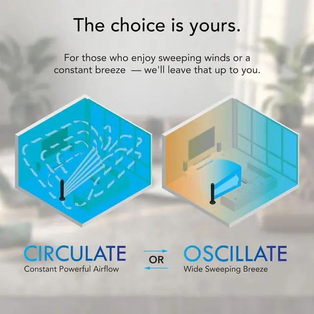 Vornados first V-Flow tower fans introduced a wide, continuous range of air to create whole room circulation. Now, theyve added oscillation bringing the best of both worlds to Vornado consumers. V-flow airflow plus oscillation truly puts a new twist on your airflow experience. 70º of rotational range are expanded to an impressive 130º of powerful, cooling airflow with V-Flow air diffusion. OSC84 offers the same V-Flow whole room circulation that youve come to expect from Vornado, and for those who like options, there is also powerful oscillation on-demand. Oscillation channels legendary Vornado power and sound quality into the panoramic airflow experience Vornado enthusiasts have been asking for.