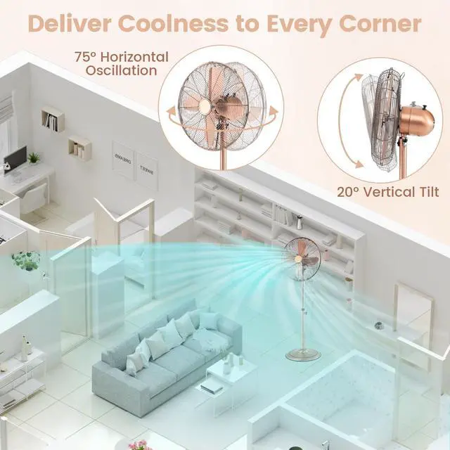16 Inch Metal Standing Fan w/ 3 Speeds & Adjustable Height, 75° Oscillation & 20° Tilt