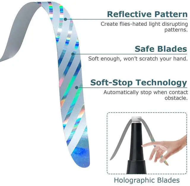 Effective Fly Repellent Fan:Our fly repellent fan with reflective patterns can create a flies-hated radius on table,effectively prevent annoyed flies or insects from interrupting your tranquility of meal. Please ensure the food is within the effective radius of the fan for better using effect.