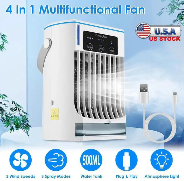 4 In 1 Air Conditioner Fan:Our misting fans function is a combination of small air-conditioner,desktop fan,air humidifier,and night light. Multifunctional desk fan prevents you from wasting money to buy multiple small household appliances. Turn it on and enjoy your moist cooling summer.