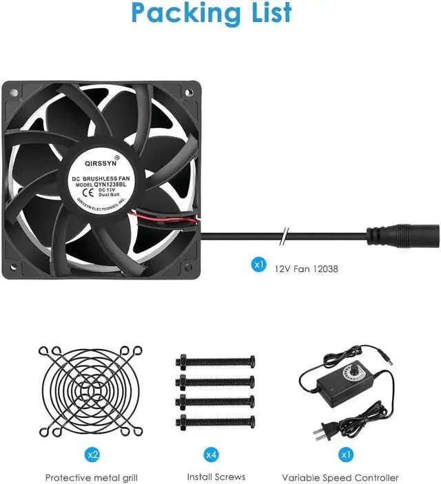 list: 1 pack 120mm fan with protective grills on both sides and a separate speed controller.