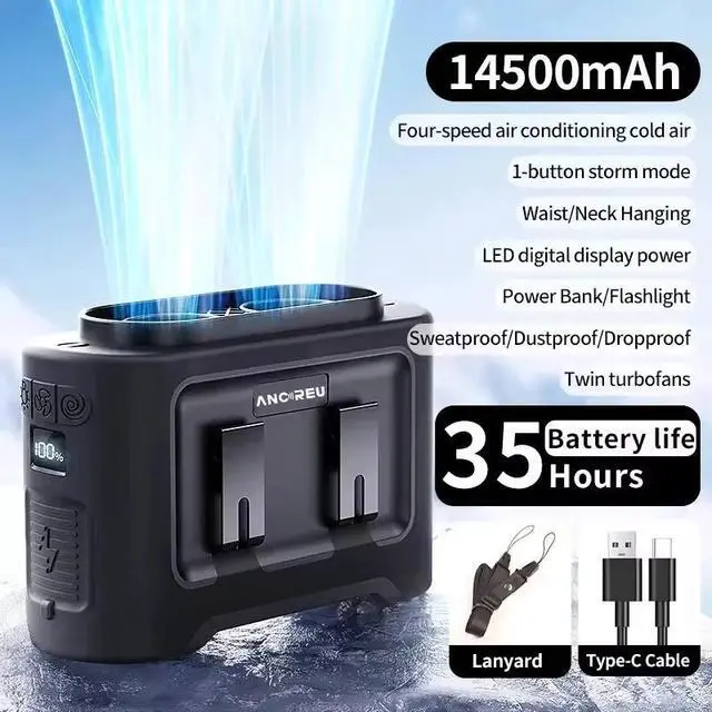 Hot 14500mah USB High Speed Wearable Fan Waist Clip Portable Fan Rechargeable Battery Power Outdoor Travel Cooling Fan